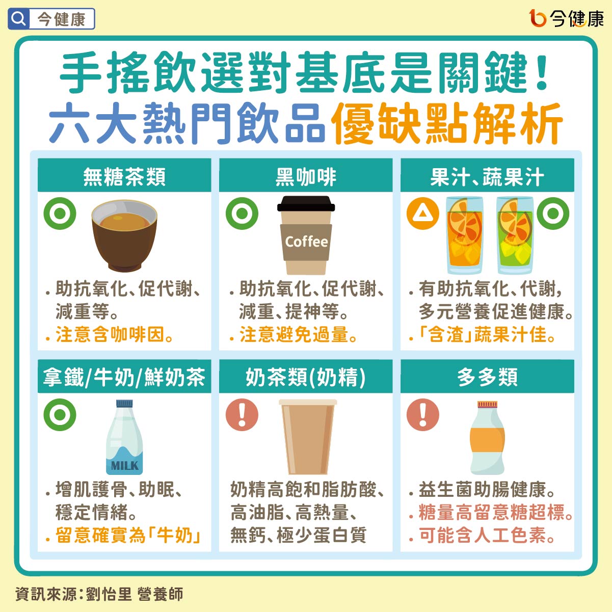 手搖飲是不少人的喜好,不過很多情況是「喝了傷身、不喝又傷心」,如何喝得健康、身心平衡很重要。劉怡里營養師從飲品、配料、糖分各角度解析,來看怎麼喝更健康!