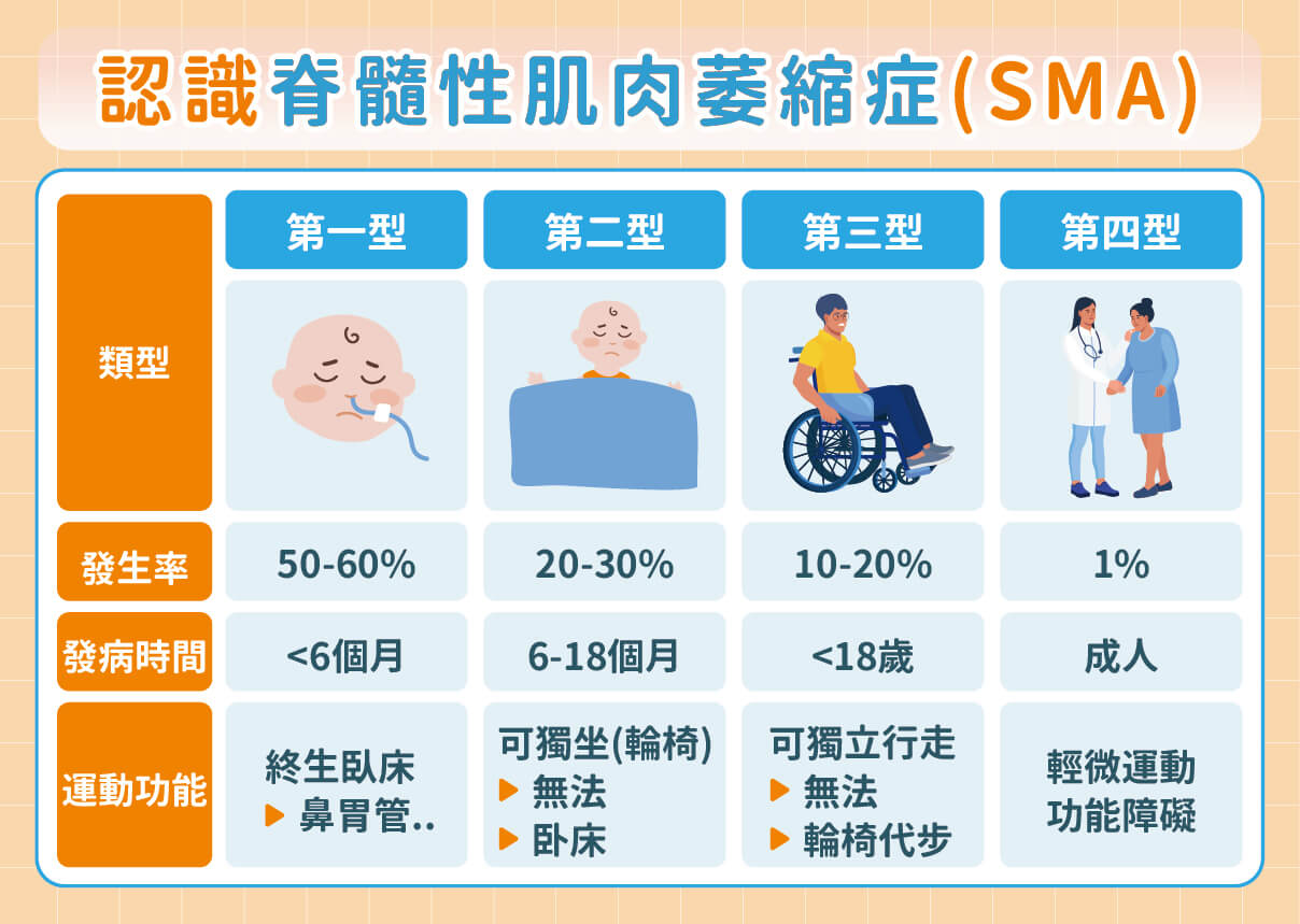 SMA 多在兒童期發病,99%的患者於18歲前出現症狀。不過,隨著疾病修正治療的問世與健保給付擴大,將有更多病友有望受惠並改善生活品質。